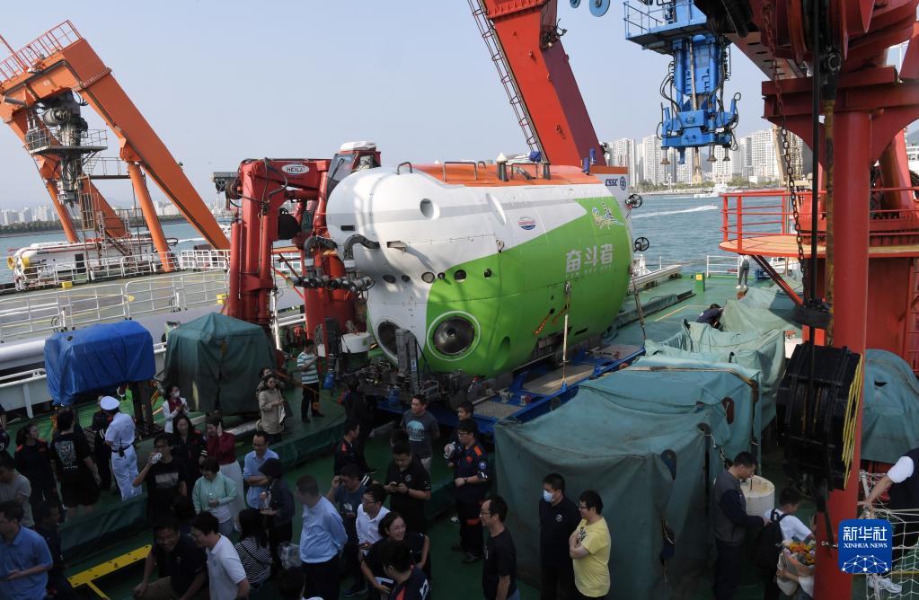 3月11日,“探索一號”科考船攜“奮斗者”號全海深載人潛水器抵達三亞。