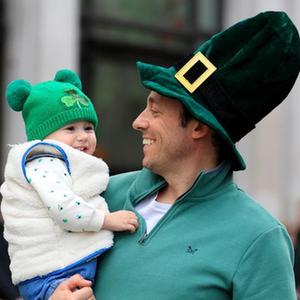 3月12日,在英國倫敦,一對父子參加圣帕特里克節游行。