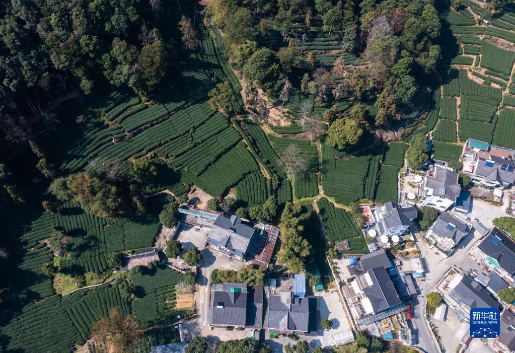 3月13日,空中俯瞰梅家塢村的西湖龍井茶地(無(wú)人機照片)。
