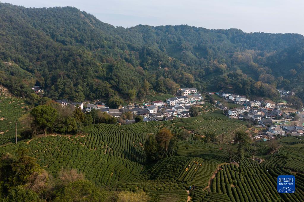 3月13日拍攝的龍井村的茶山(無(wú)人機照片)。