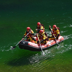 3月14日,在杭州市臨安區的昌化溪,狼行公益應急救援隊的志愿者隊員們在進(jìn)行水上救援培訓。