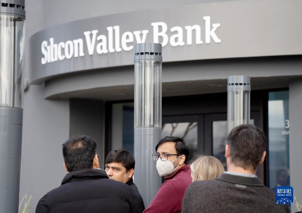 3月13日,客戶(hù)在美國加利福尼亞州圣克拉拉市硅谷銀行總部外排隊等候辦理業(yè)務(wù)。