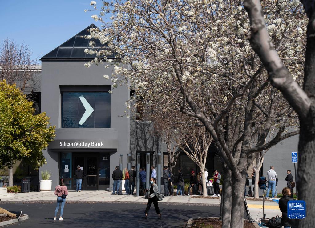 3月13日,客戶(hù)在美國加利福尼亞州圣克拉拉市硅谷銀行總部外排隊等候辦理業(yè)務(wù)。