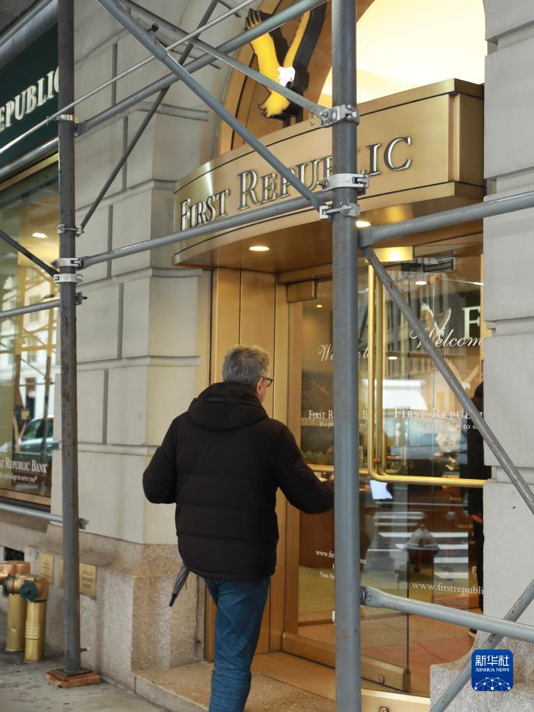 3月13日,在美國紐約,一名男子走進(jìn)一家第一共和銀行營(yíng)業(yè)部。