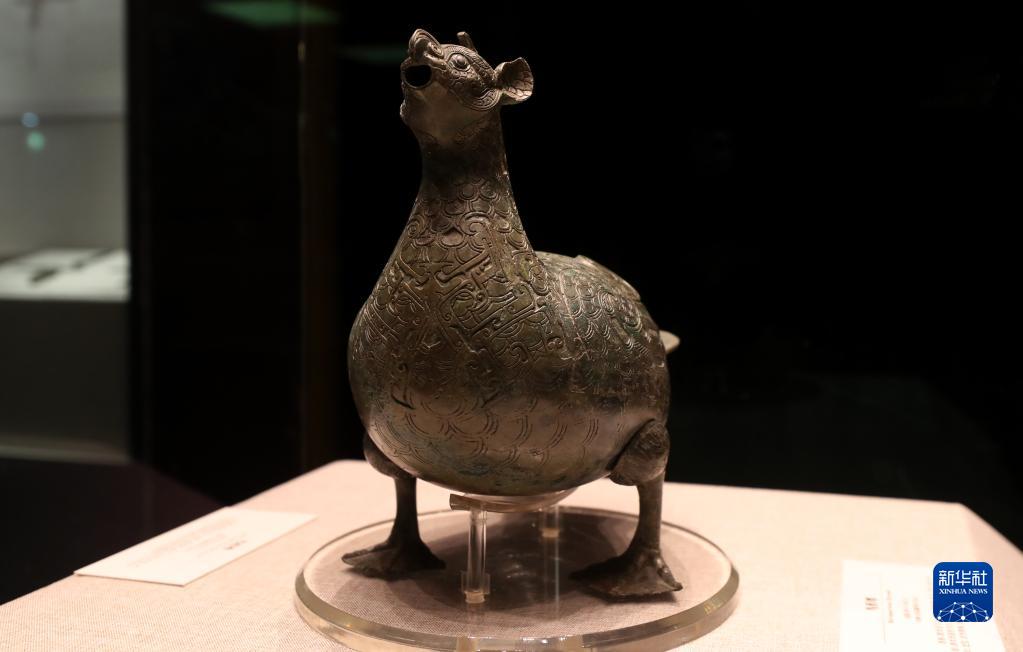 3月14日拍攝的在展覽中展出的戰國鳥(niǎo)形尊。