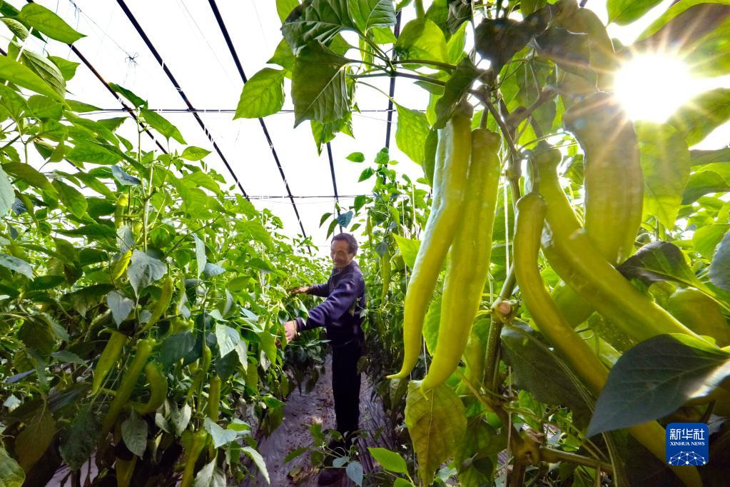 3月15日,河北省樂(lè )亭縣一家農業(yè)開(kāi)發(fā)企業(yè)的工人在大棚內打理種植的辣椒。