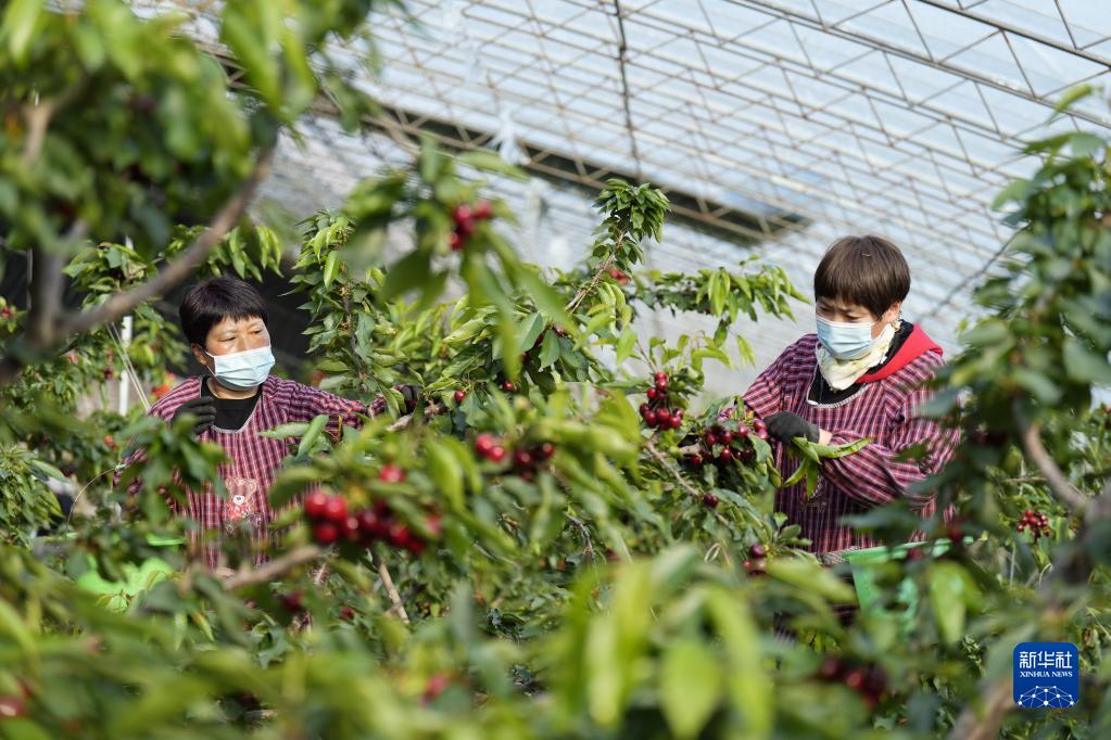 3月15日,河北省樂(lè )亭縣一家農業(yè)開(kāi)發(fā)企業(yè)的工人在大棚內采摘櫻桃。