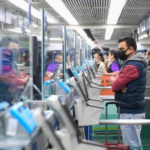 3月15日,旅客在深圳羅湖口岸入境檢查大廳準備入境。
