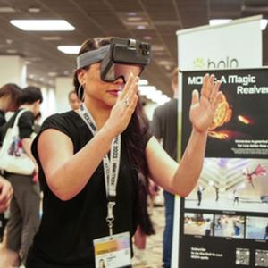 3月11日,在“西南偏南”大會(huì )和藝術(shù)節上,一位參與者正在體驗增強現實(shí)技術(shù)。