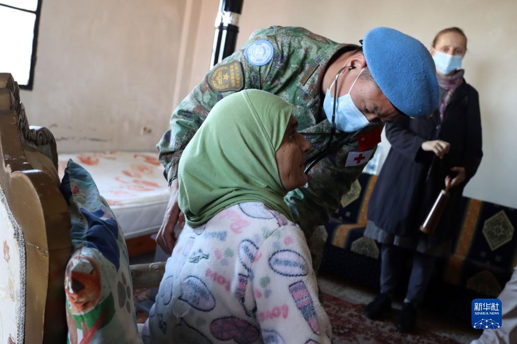3月13日,在黎巴嫩南部邊境地區卡法哈馬村,中國維和醫療分隊隊員為病人診療。
