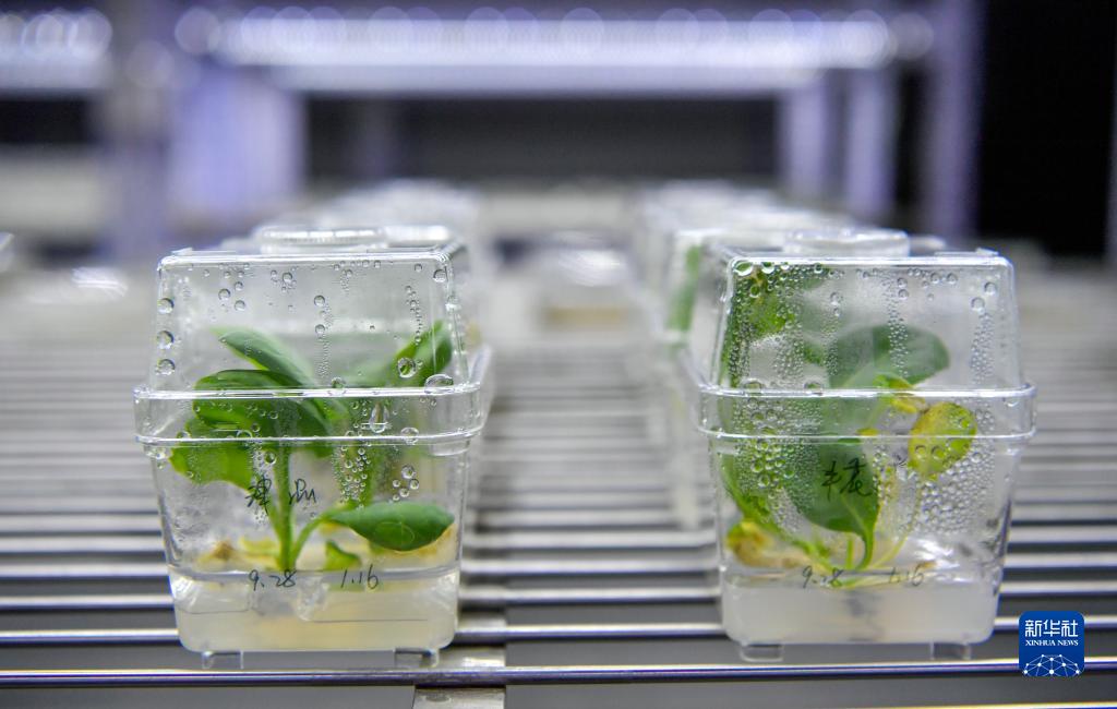 這是3月14日在天津市農業(yè)科學(xué)院種質(zhì)資源與生物技術(shù)研究所組培室拍攝的花椰菜基因編輯再生植株。
