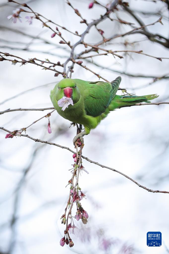 3月15日,一只鸚鵡在比利時(shí)布魯塞爾五十周年紀念公園的枝頭覓食。