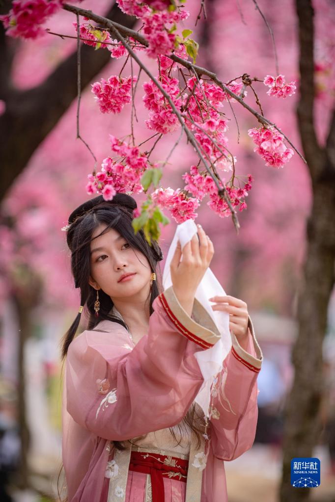 近日,云南昆明圓通山公園的櫻花進(jìn)入盛花期,吸引大批游客前來(lái)觀(guān)賞。