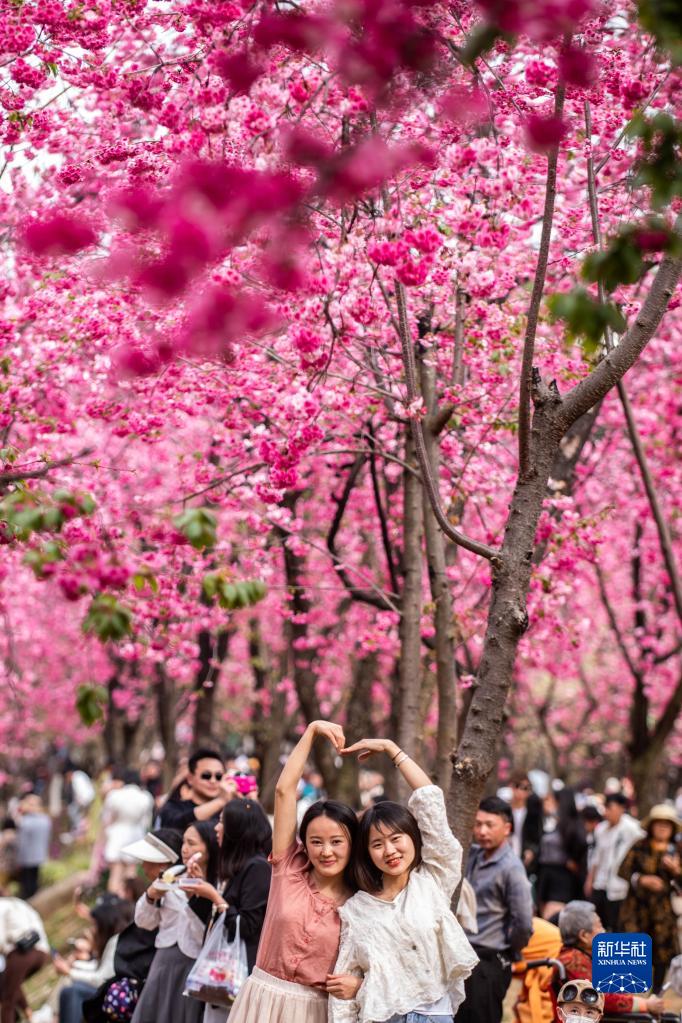 近日,云南昆明圓通山公園的櫻花進(jìn)入盛花期,吸引大批游客前來(lái)觀(guān)賞。