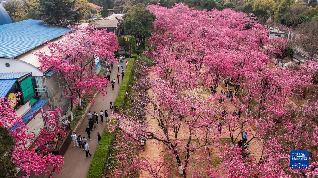 近日,云南昆明圓通山公園的櫻花進(jìn)入盛花期,吸引大批游客前來(lái)觀(guān)賞。