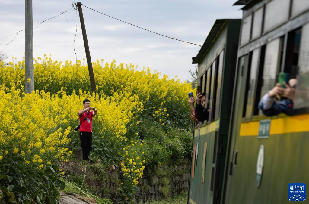 3月15日,“張火癡”拍攝一列經(jīng)過(guò)花海的嘉陽(yáng)小火車(chē)。