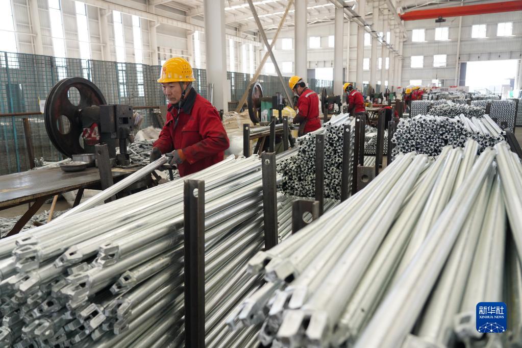 3月15日,在位于樂(lè )亭經(jīng)濟開(kāi)發(fā)區的華北易安德腳手架制造有限公司,工人在生產(chǎn)車(chē)間內工作。