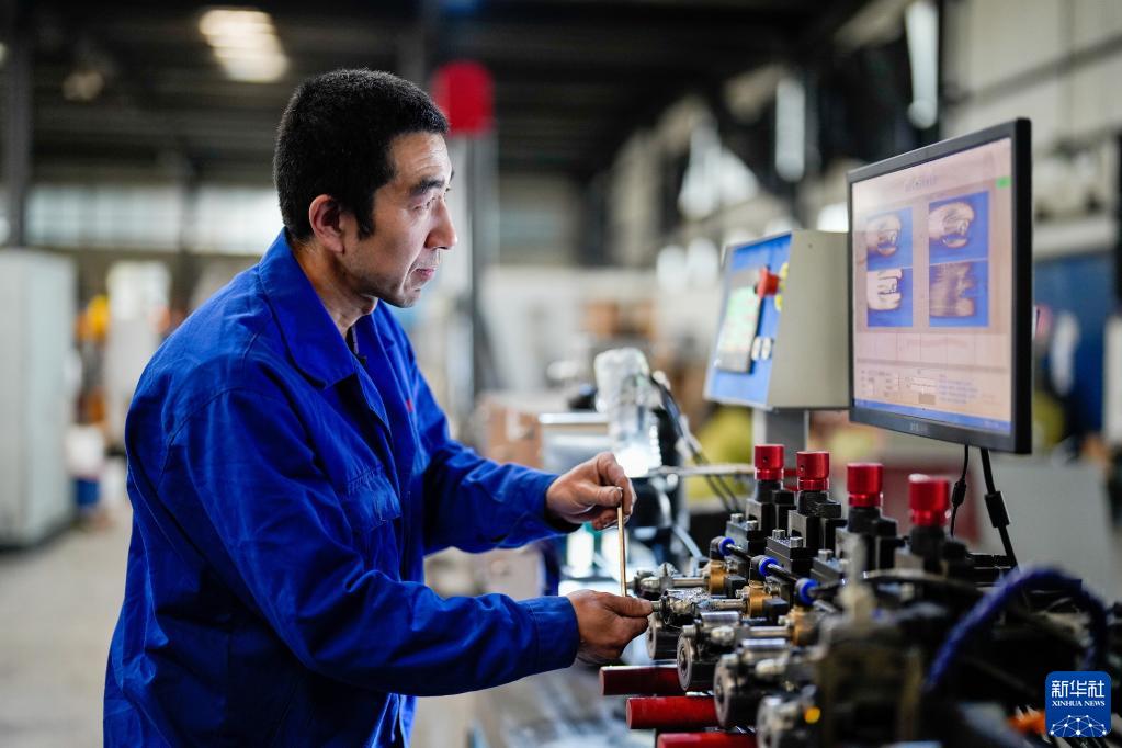 3月16日,玉田縣一家農用管材生產(chǎn)企業(yè)工人在滴灌設備生產(chǎn)線(xiàn)上工作。