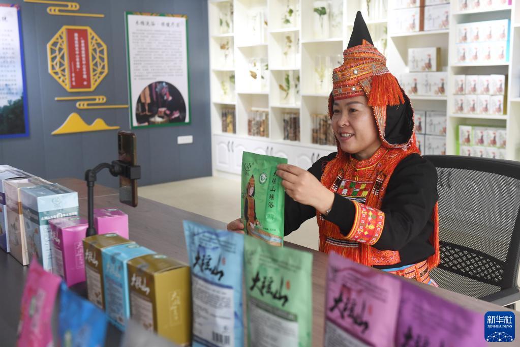 3月16日,在廣西金秀瑤族自治縣長(cháng)垌鄉平道村一家瑤醫藥生產(chǎn)企業(yè),一名員工通過(guò)網(wǎng)絡(luò )直播推介產(chǎn)品。
