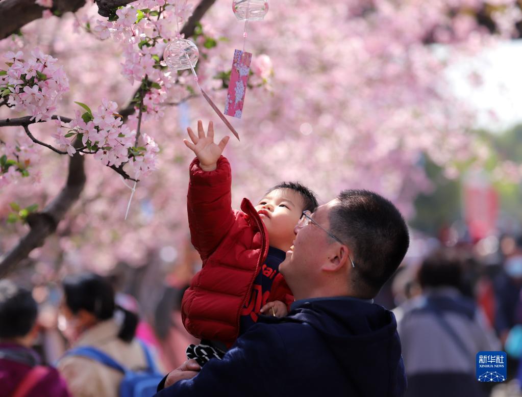 3月16日,小朋友和家長(cháng)在南京市莫愁湖景區賞花。