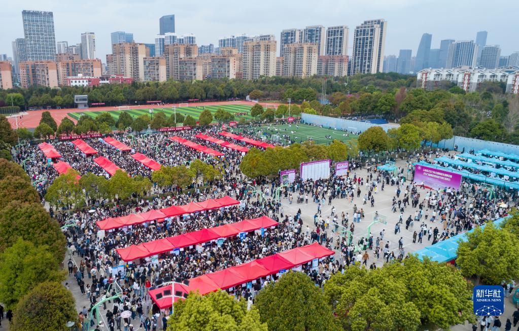 這是3月16日拍攝的云南師范大學(xué)呈貢主校區校園招聘會(huì )現場(chǎng)(無(wú)人機照片)。