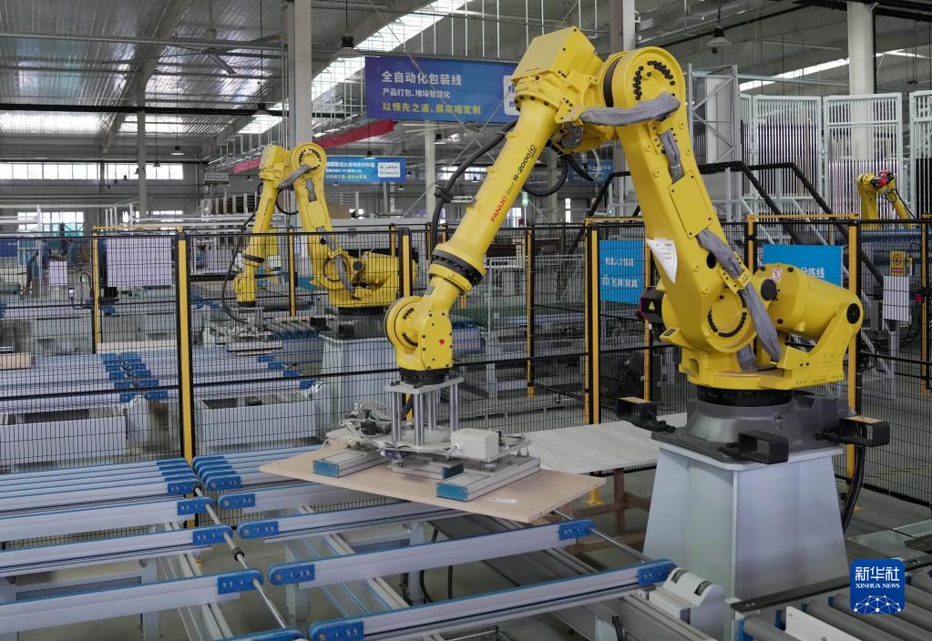 3月16日,從北京轉移到唐山市蘆臺經(jīng)濟開(kāi)發(fā)區的一家具企業(yè)的機器手在工作中。