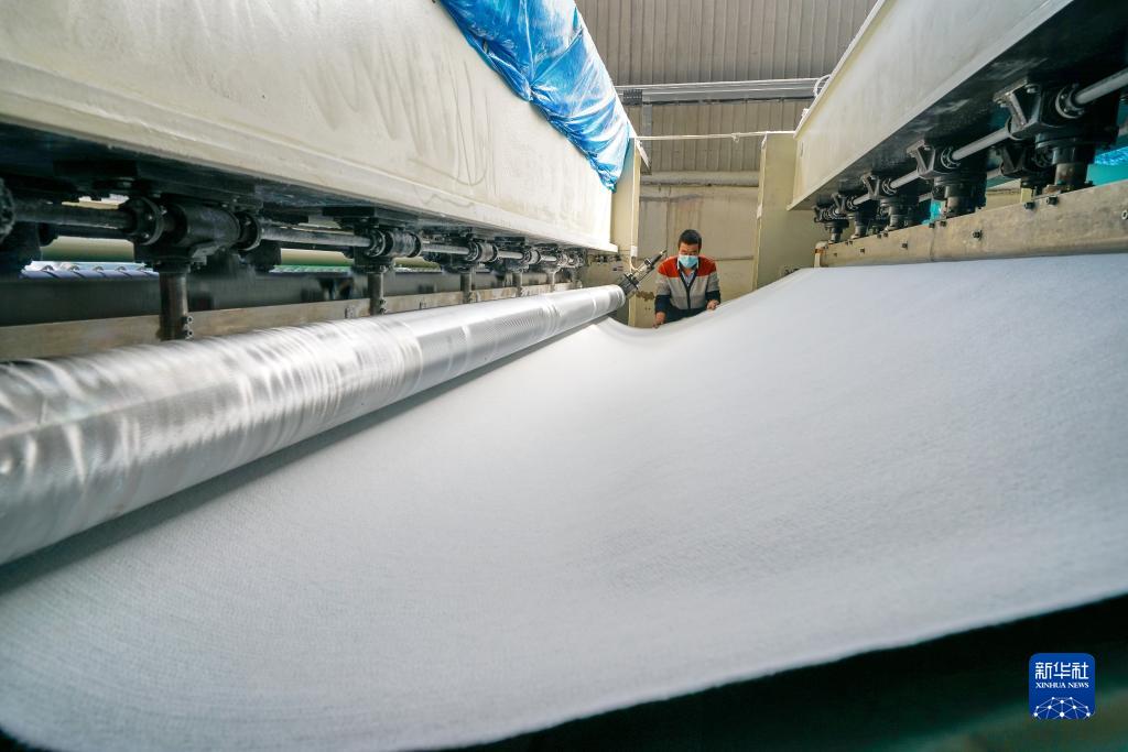 3月17日,河北省玉田縣窩洛沽鎮一家床墊制造企業(yè)的工人在生產(chǎn)線(xiàn)上工作。