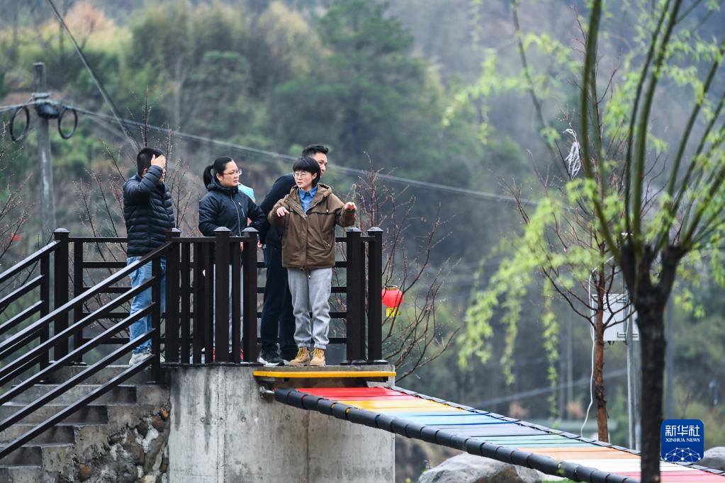 3月17日,陳萍梅(右一)在位于清涼峰鎮頰口村的家庭農場(chǎng)里給游客介紹農場(chǎng)的情況。