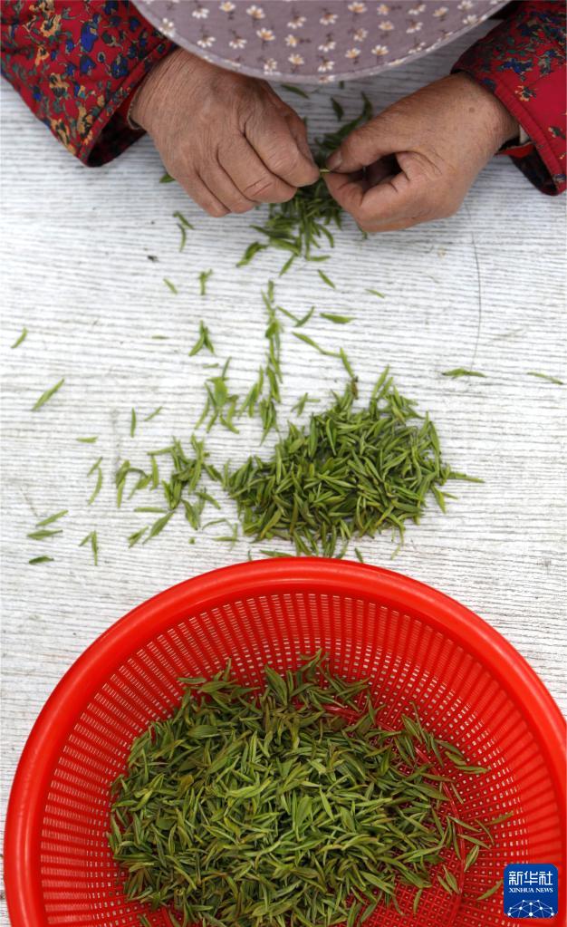 在蘇州市吳中區西山國家現代農業(yè)示范園金海華碧水緣茶葉基地,采茶工在挑選茶葉(3月16日攝)。