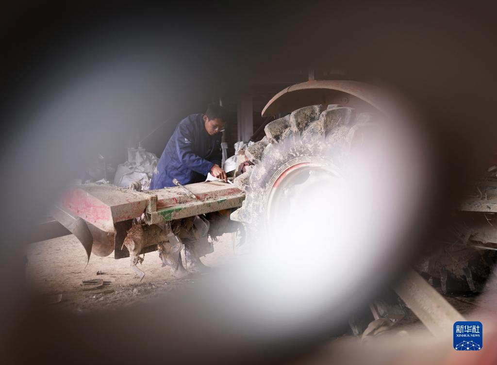 3月16日,張必超在諸暨市里聯(lián)農機專(zhuān)業(yè)合作社維修農機。