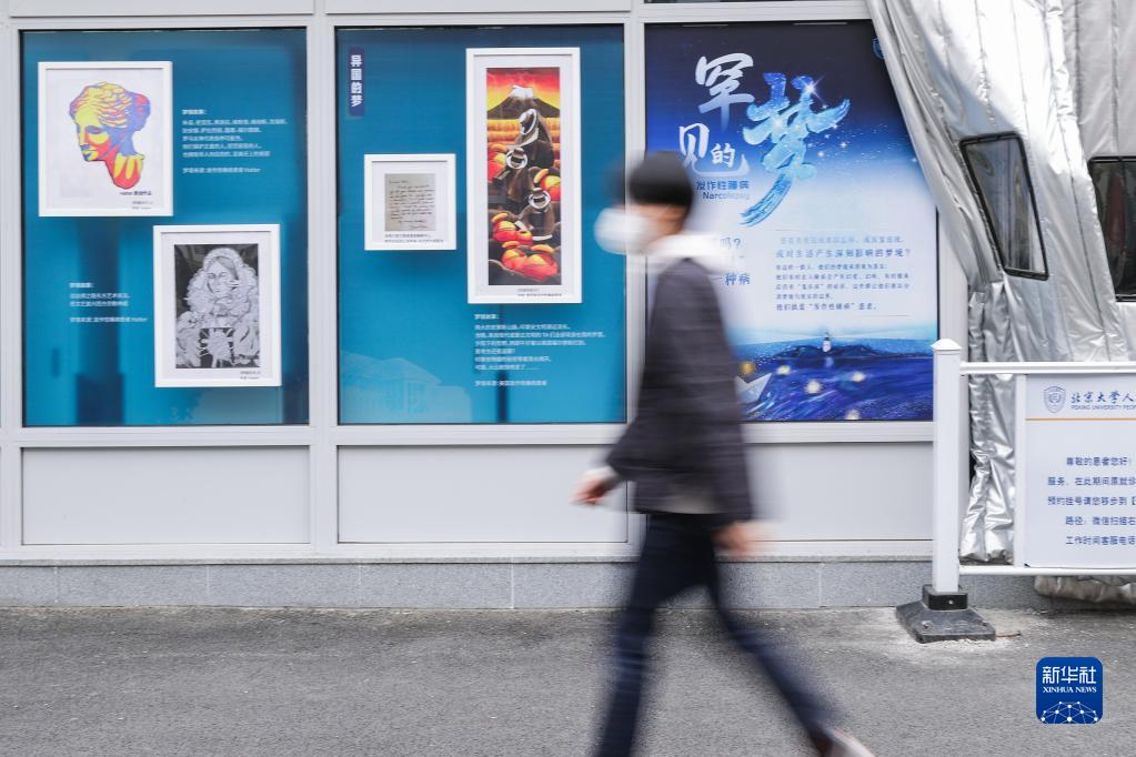 3月17日,行人從北京大學(xué)人民醫院《罕見(jiàn)的夢(mèng)》公益畫(huà)展前走過(guò)。