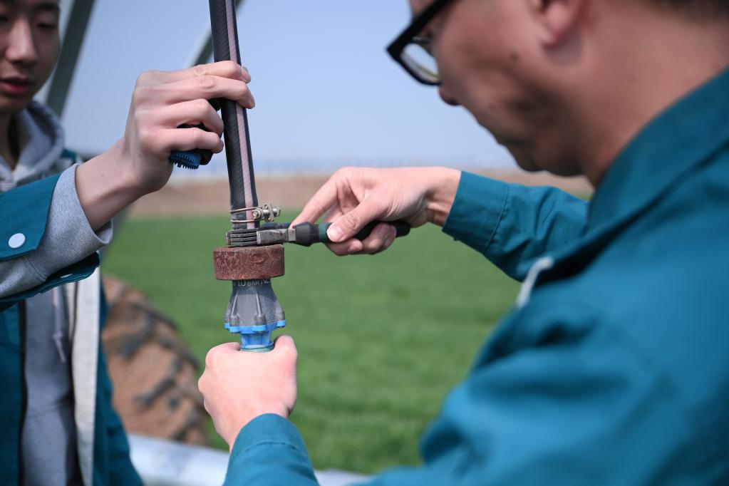 “這個(gè)噴頭換過(guò)了,你登記好?!痹诤幽鲜●v馬店市西平縣高標準農田示范區的麥田里,河南水投柏農產(chǎn)業(yè)發(fā)展有限公司運營(yíng)管理部負責人劉亞輝一邊擰好噴灌機的新噴頭,一邊叮囑一起巡檢的王英凡。
