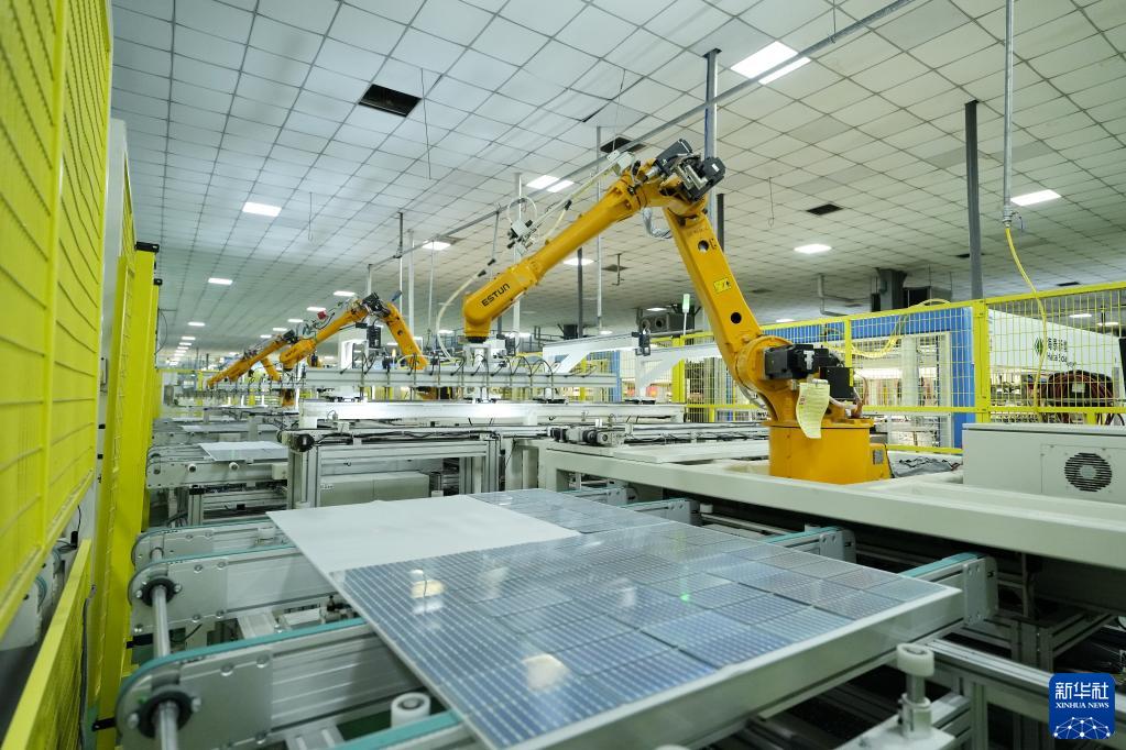 河北省玉田縣一家光伏設備生產(chǎn)企業(yè)的自動(dòng)化生產(chǎn)線(xiàn)(3月18日攝)。