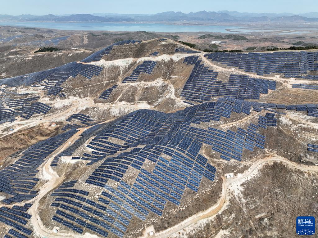 河北省玉田縣唐自頭鎮一處山地光伏發(fā)電站(3月17日攝,無(wú)人機照片)。