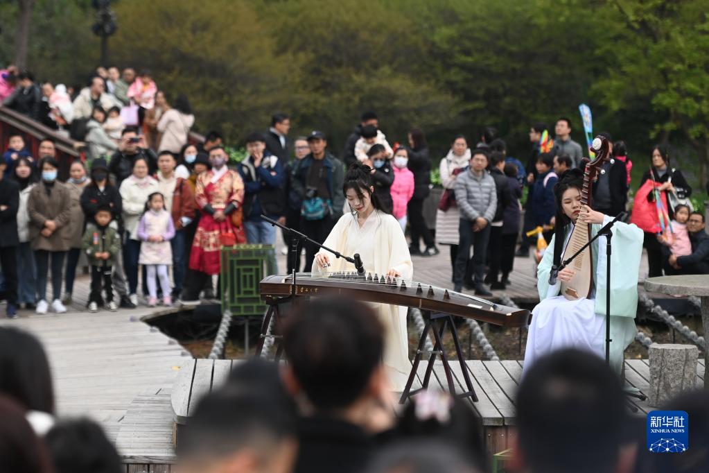 3月18日,古裝愛(ài)好者在西溪濕地演奏。