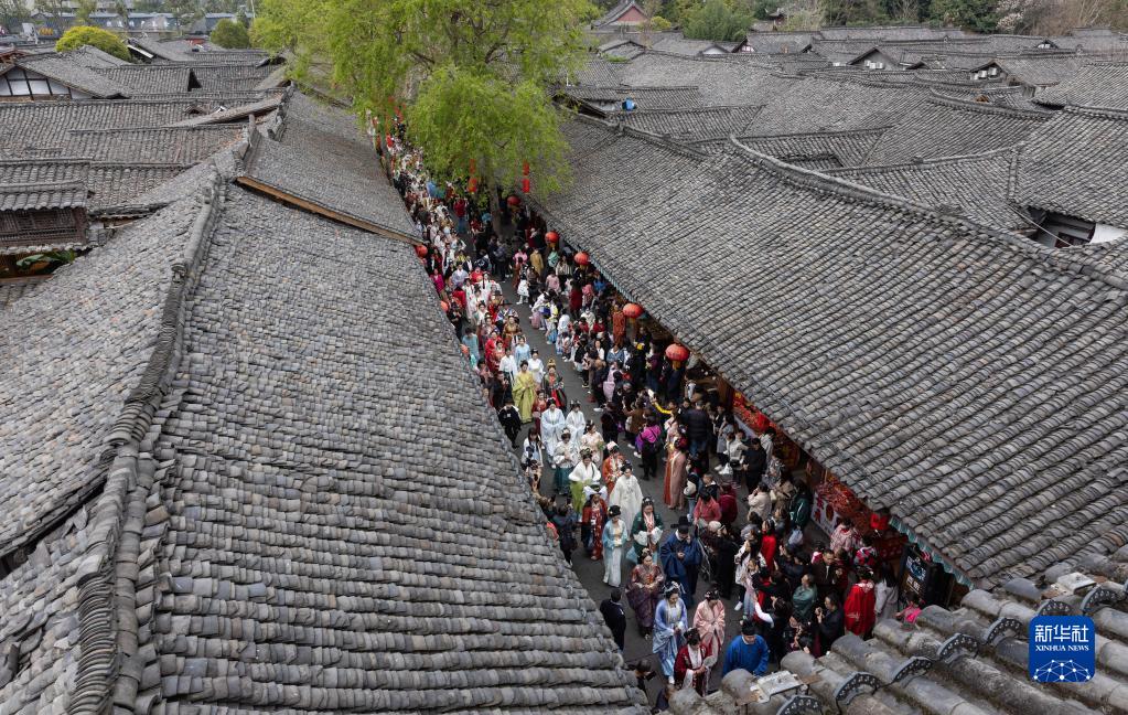 當日,為期三天的2023年中華民族服飾展演暨閬中漢服紀在四川省閬中古城舉行,全國各地傳統服飾愛(ài)好者齊聚閬中古城,穿漢服、游古城,“以服會(huì )友”。