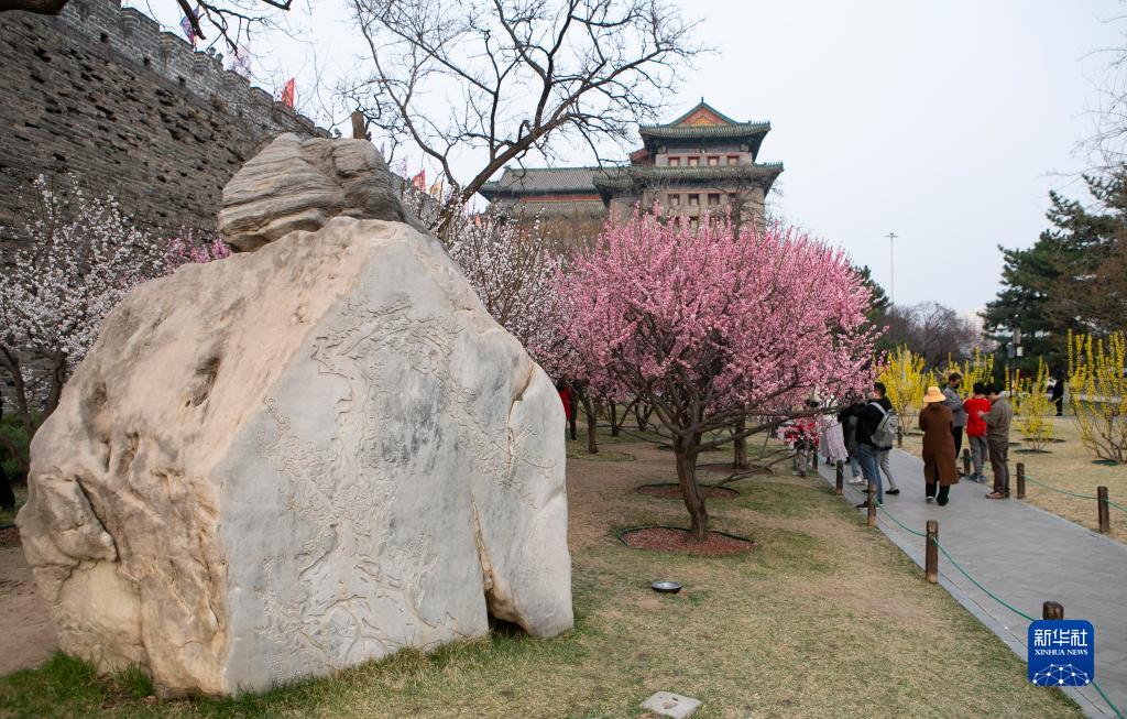 近日,北京明城墻遺址公園內春花綻放,引來(lái)大批游客踏青賞春。