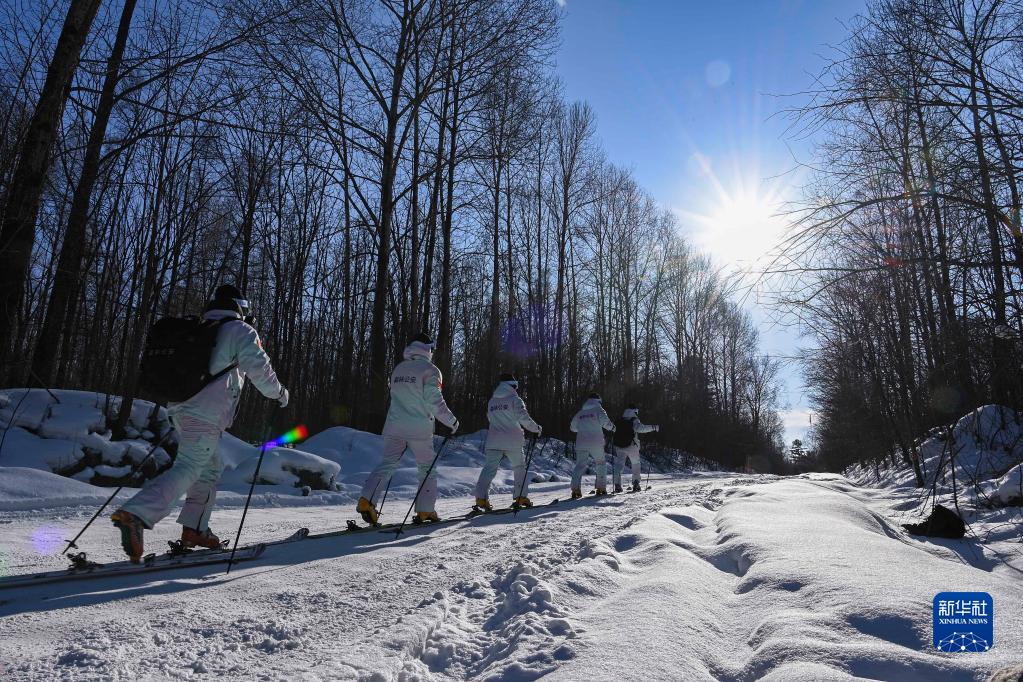 這是2023年2月7日,松江河森林公安分局雪上巡邏案件偵查大隊隊員列隊向巡邏區域進(jìn)發(fā)。