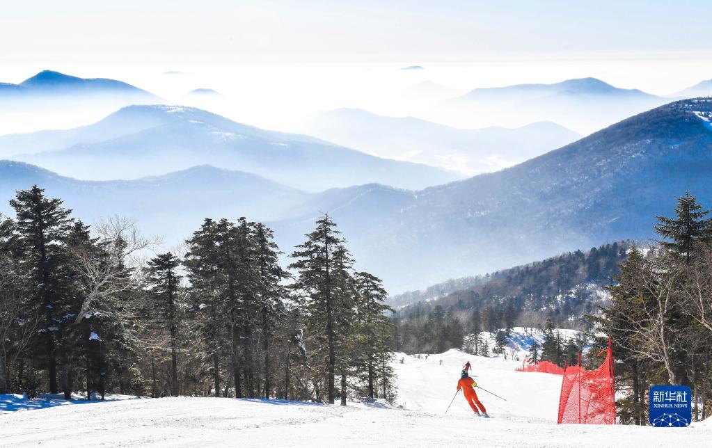 這是2020年1月26日,滑雪愛(ài)好者在吉林市冰雪試驗區北大湖滑雪度假區滑雪。