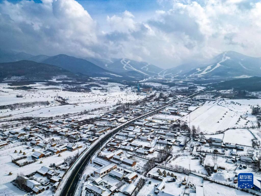 2023年1月19日,白雪覆蓋的吉林市永吉縣北大湖鎮南溝村(無(wú)人機照片)。