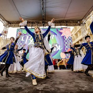 3月19日,人們在阿塞拜疆首都巴庫舉行慶?;顒?dòng),迎接即將到來(lái)的諾魯孜節。