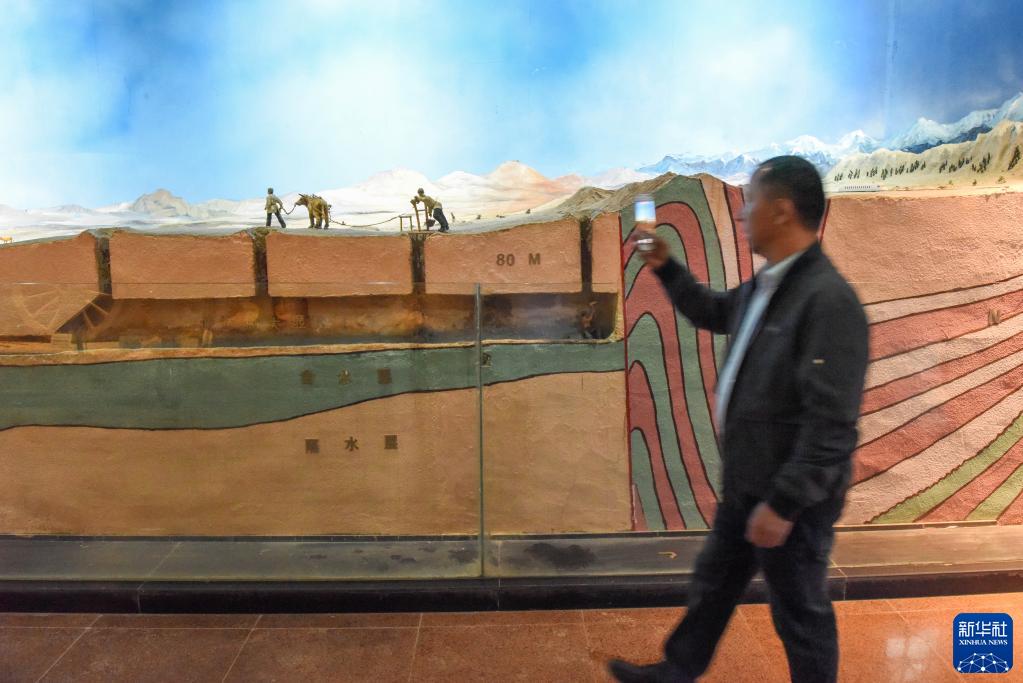 在新疆吐魯番坎兒井樂(lè )園,游客在參觀(guān)坎兒井模型(3月11日攝)。