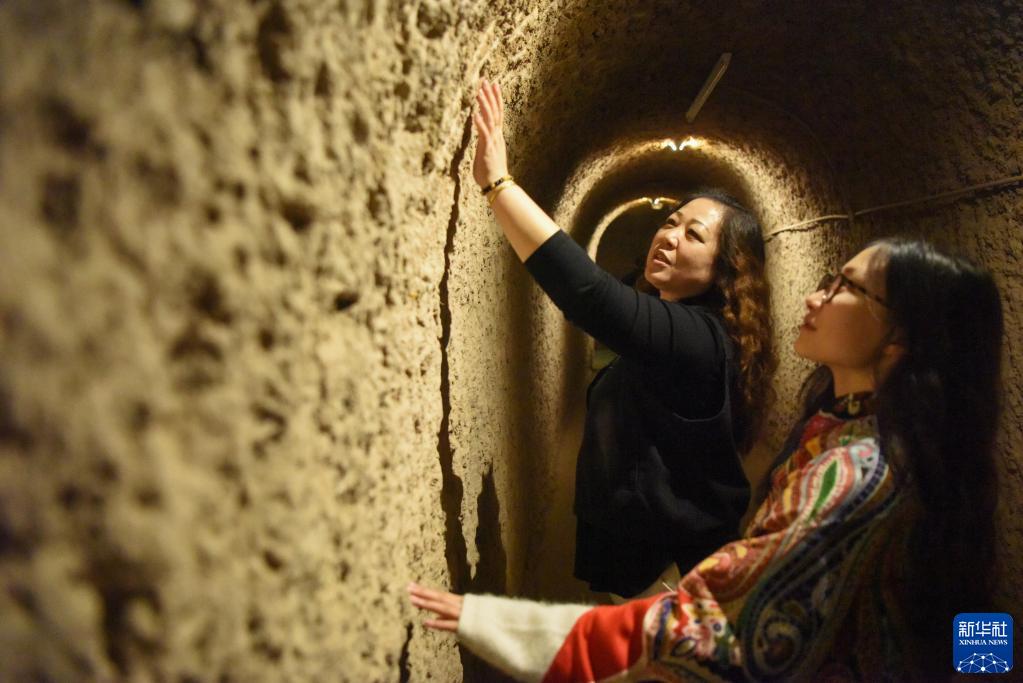 在新疆吐魯番坎兒井樂(lè )園,游客在參觀(guān)坎兒井(3月11日攝)。