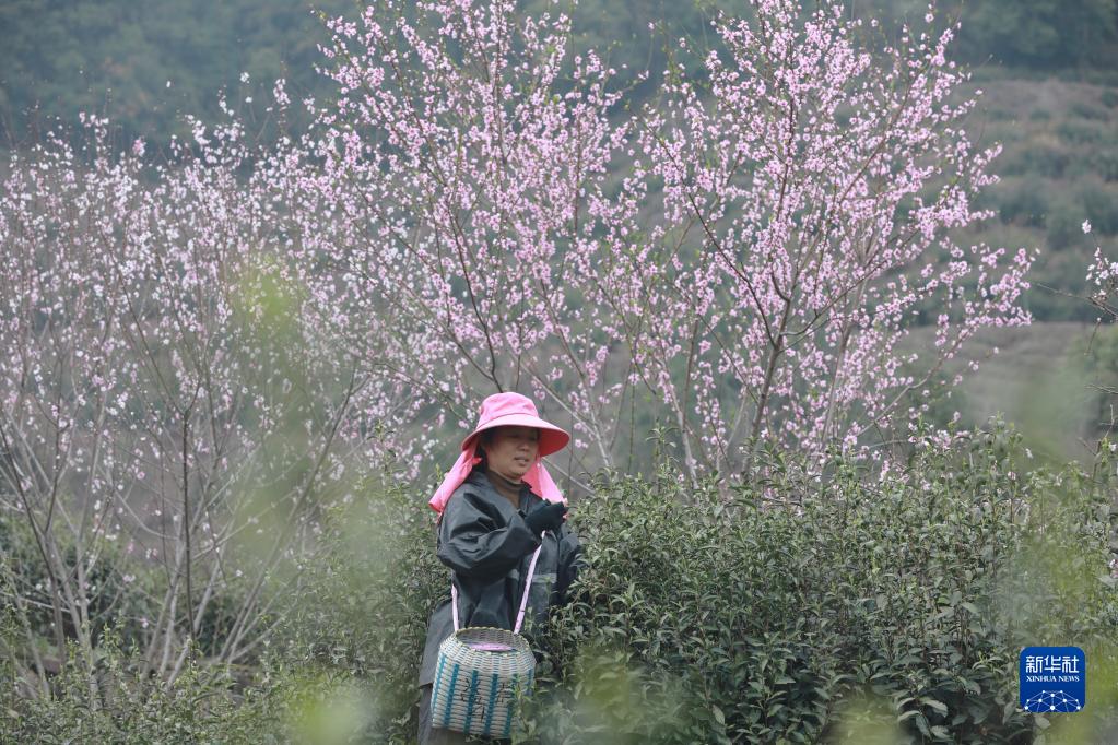 3月20日,在浙江省杭州市臨安區天目山鎮九里村生態(tài)茶園,茶農在采摘茶葉。