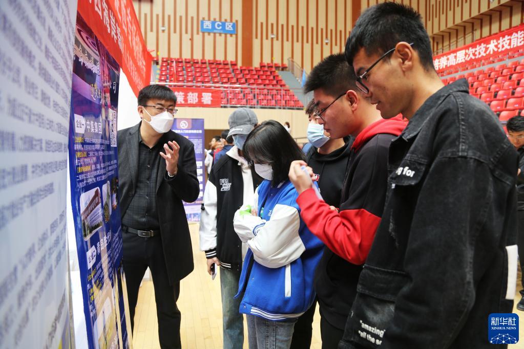 3月20日,用人單位工作人員在招聘會(huì )上向求職者介紹崗位信息。