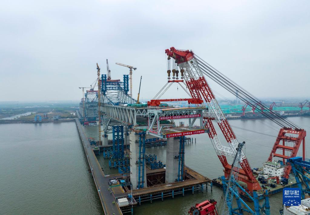 常泰長(cháng)江大橋主航道橋鋼桁梁架設全面展開(kāi)