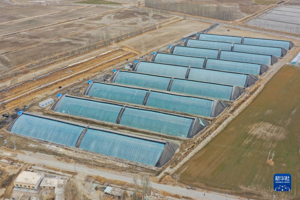 這是3月19日在新疆博湖縣現代設施農業(yè)示范基地拍攝的物聯(lián)網(wǎng)日光溫室大棚(無(wú)人機照片)。