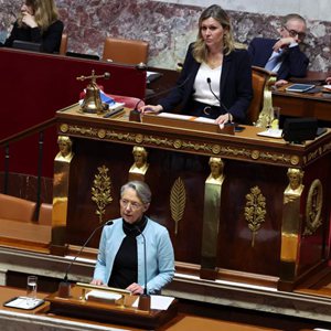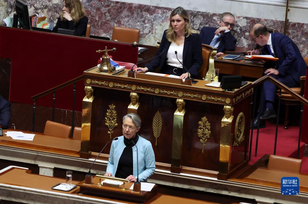 3月20日,法國總理博爾內(前)在巴黎的國民議會(huì )發(fā)表講話(huà)。
