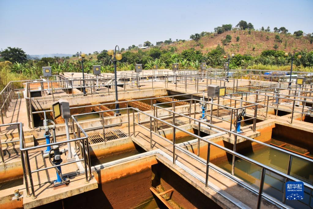 這是3月2日在喀麥隆西部大區巴富薩姆拍攝的巴富薩姆飲用水處理廠(chǎng)的混合反應池、絮凝沉淀池和過(guò)濾池。