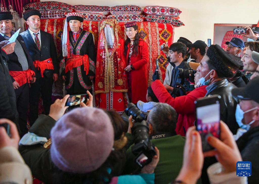 作為國家級非物質(zhì)文化遺產(chǎn),塔吉克族婚俗是塔縣的文旅名片之一?;槎Y現場(chǎng)有不少慕名而來(lái)的游客,大家一起分享喜悅幸福。